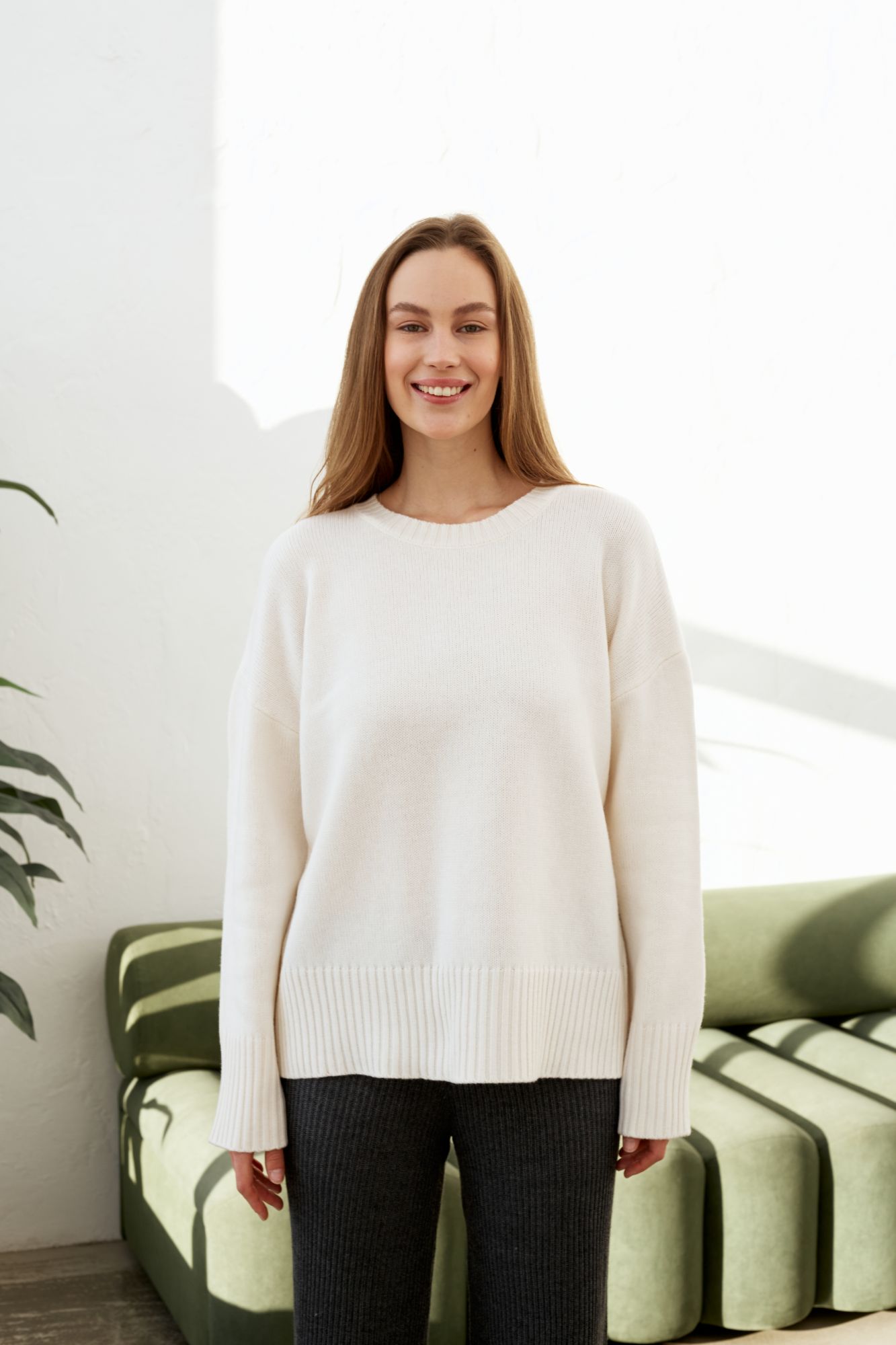 Sweater with a round neck and slits