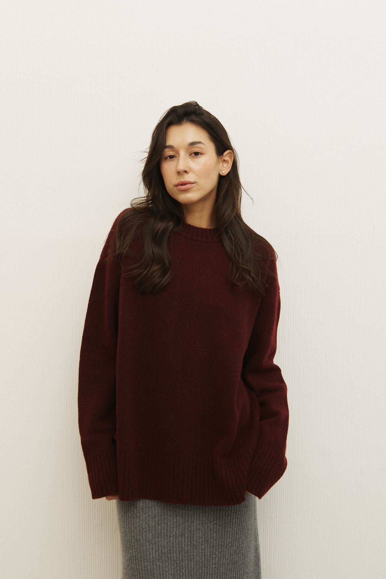 Sweater with a round neck and slits