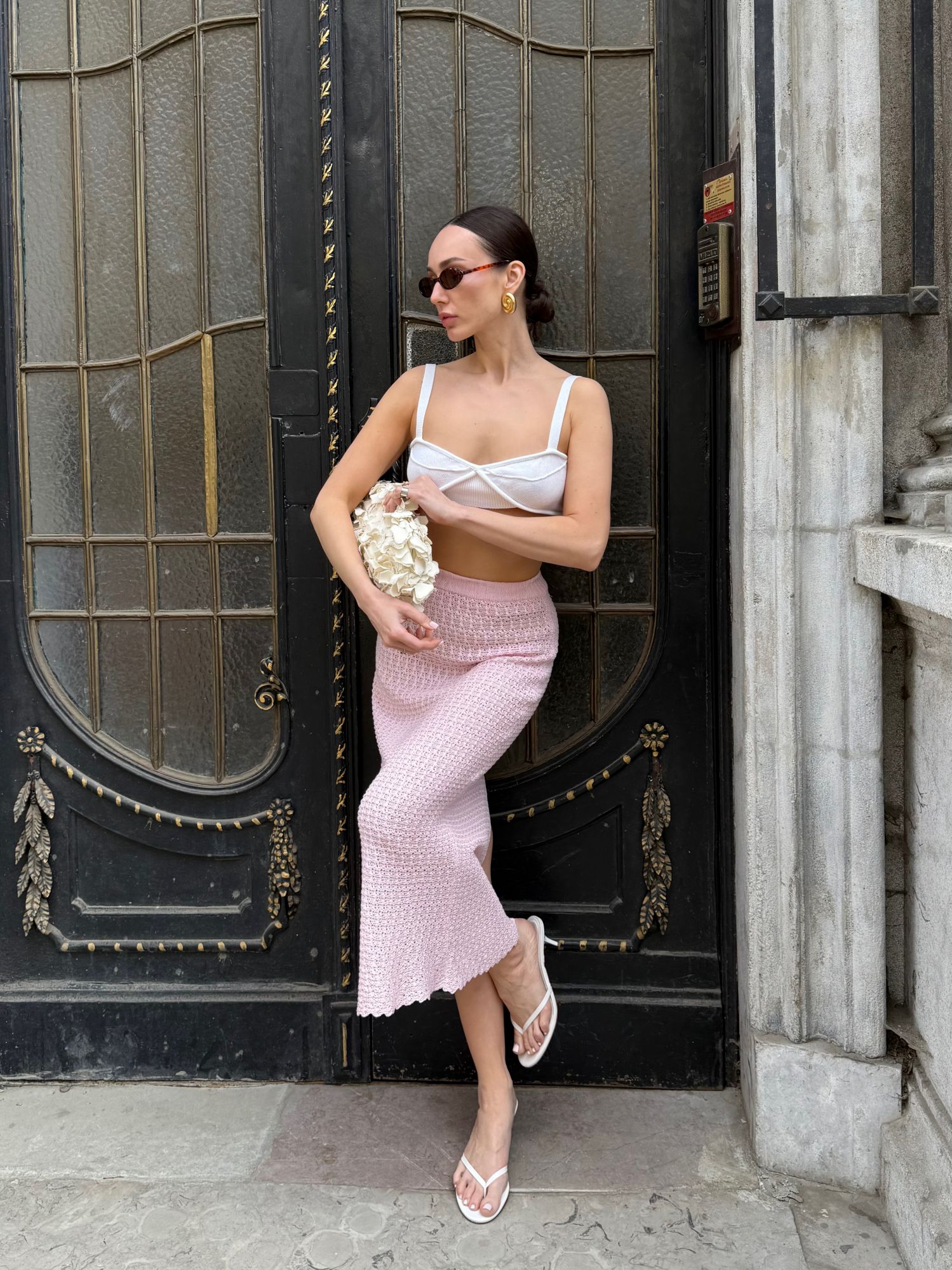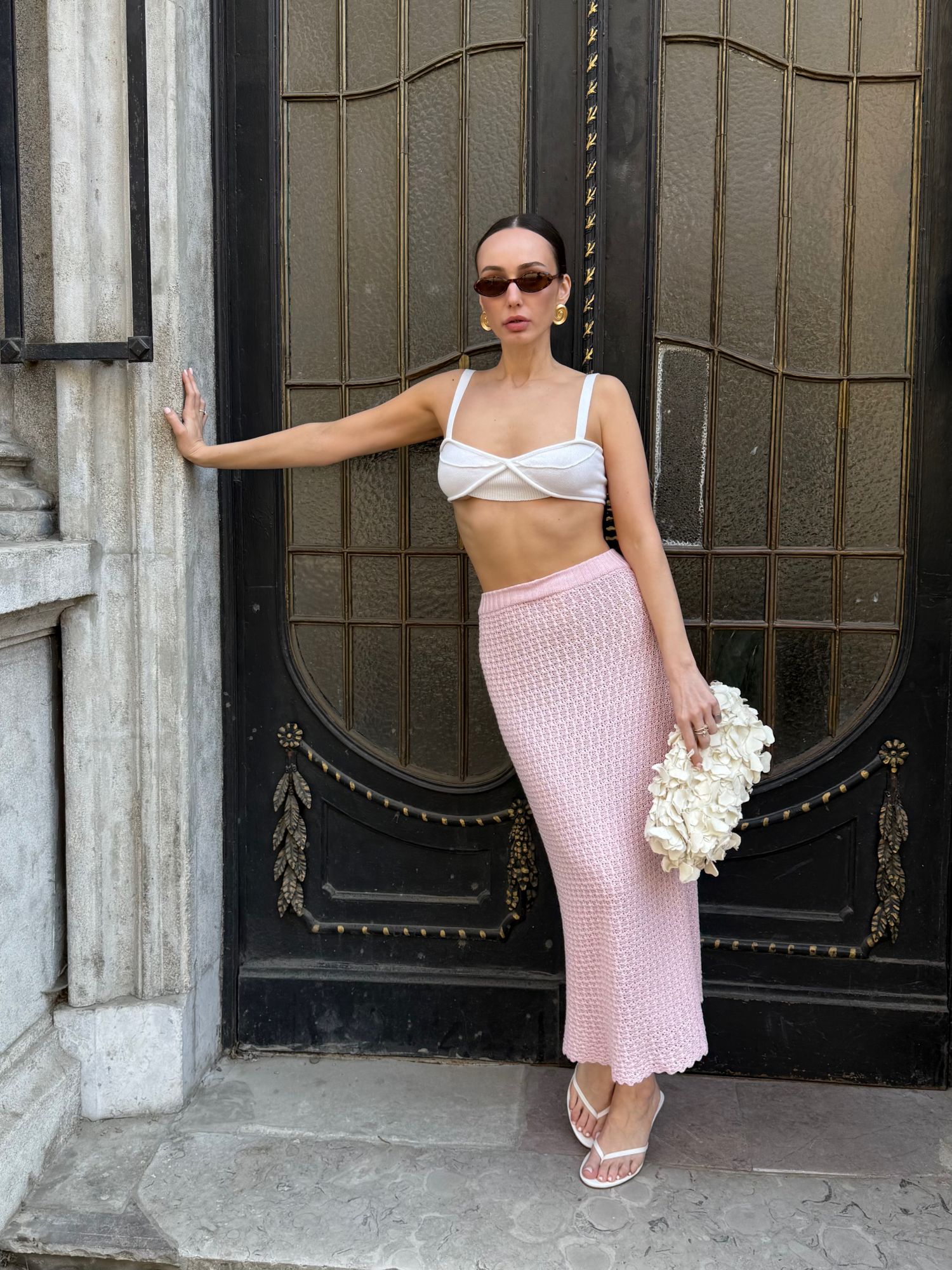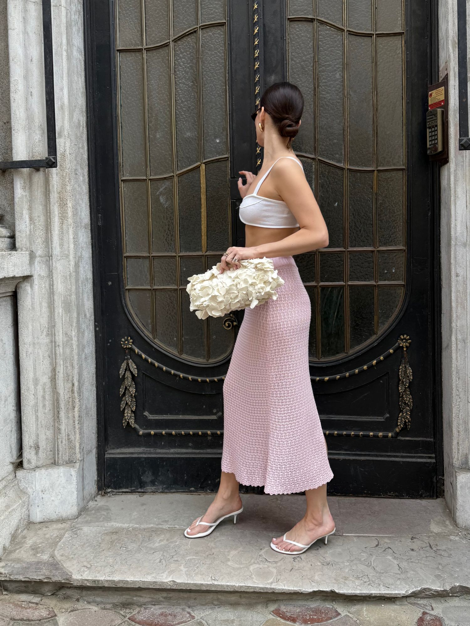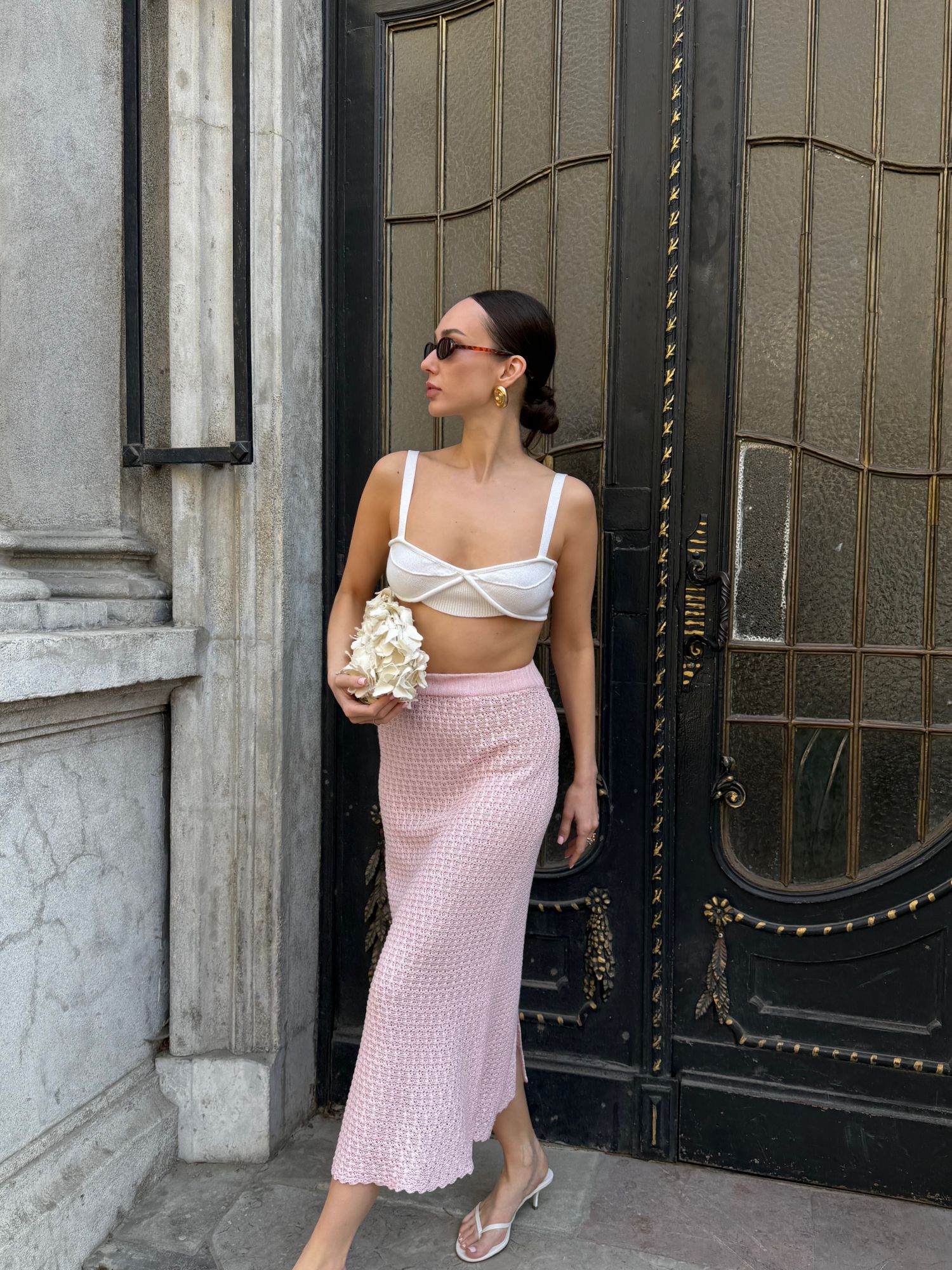 Спідниця міді ажурної в'язки з бамбуку