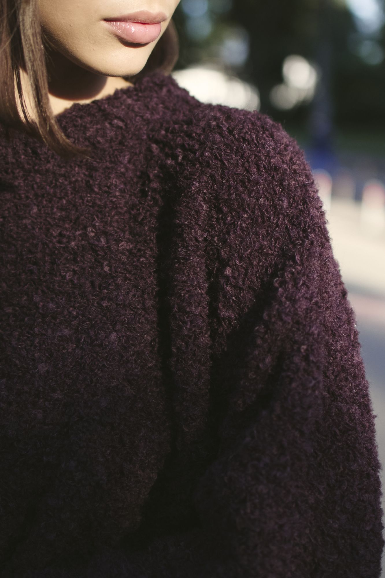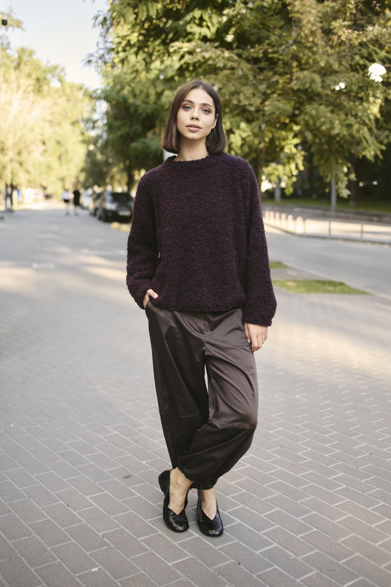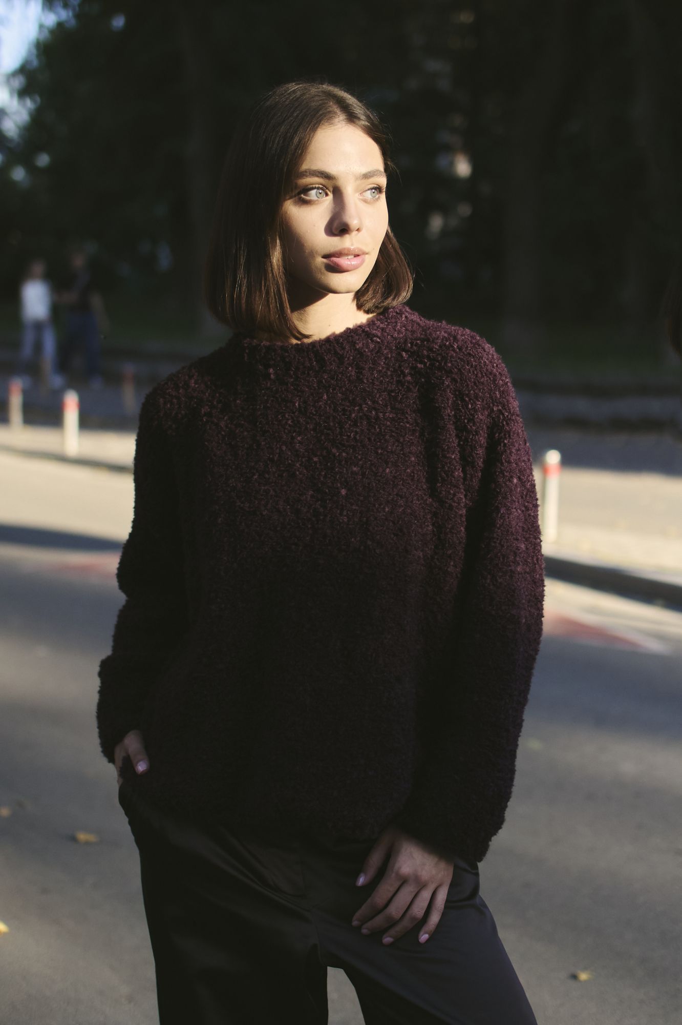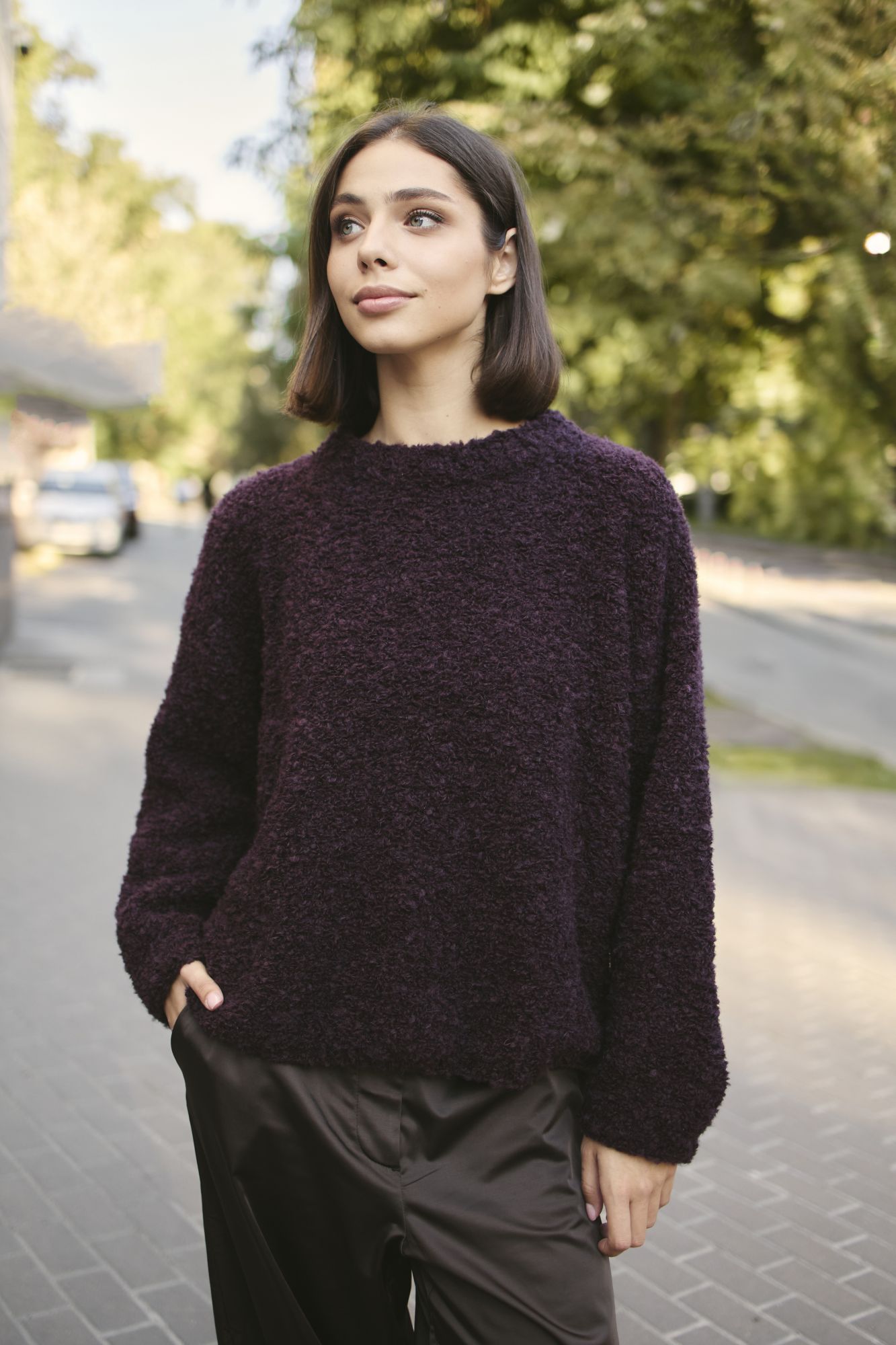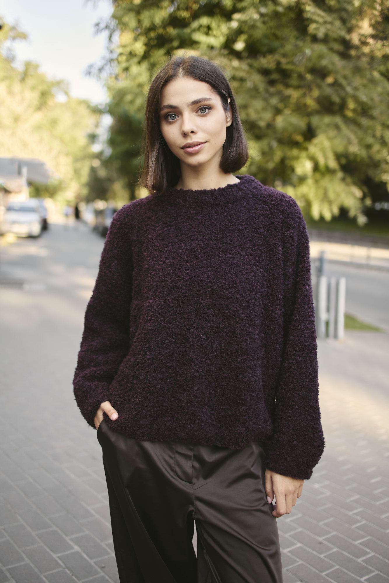 Текстурований оверсайз светр з пряжі букле і круглою горловиною