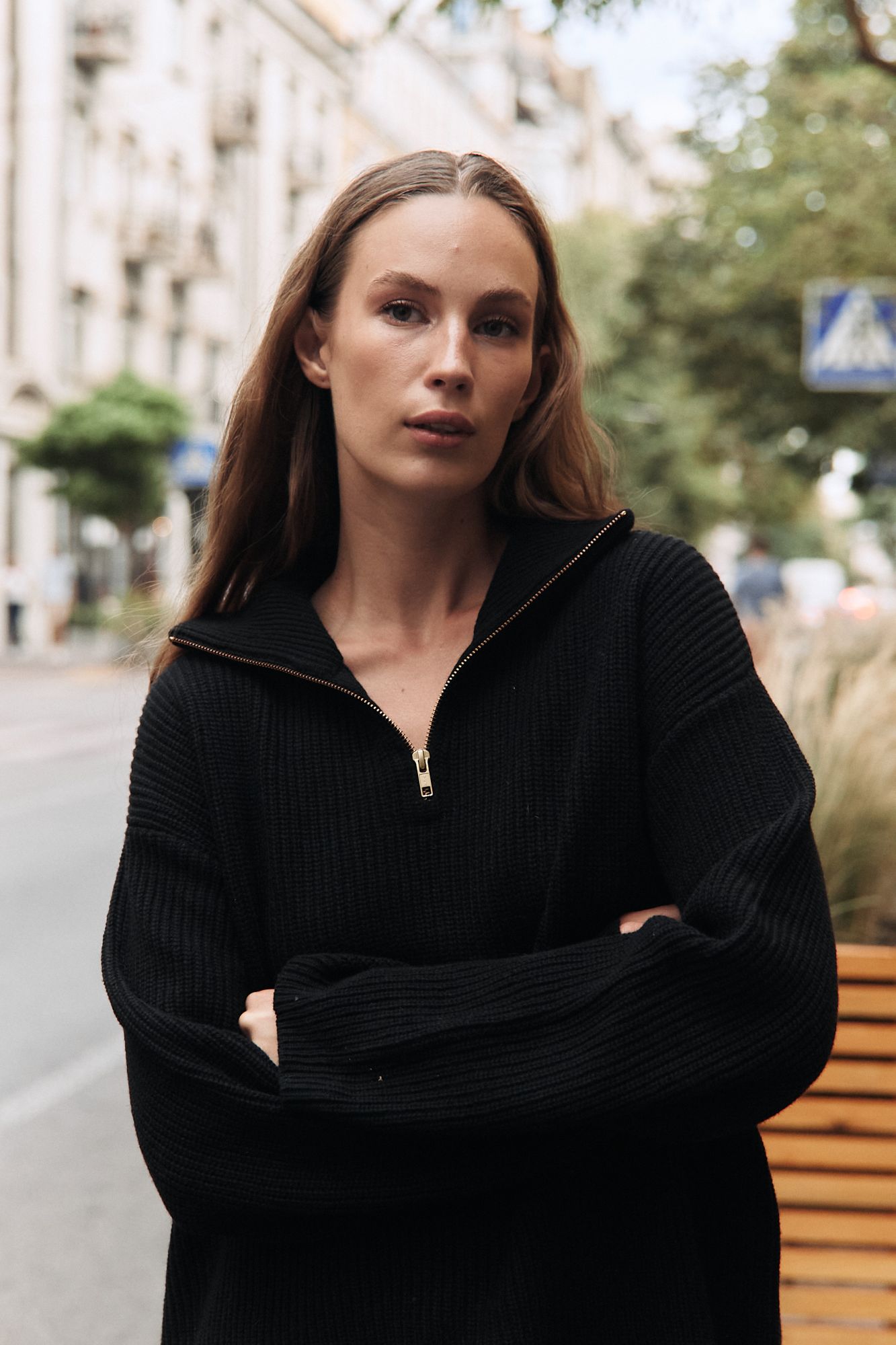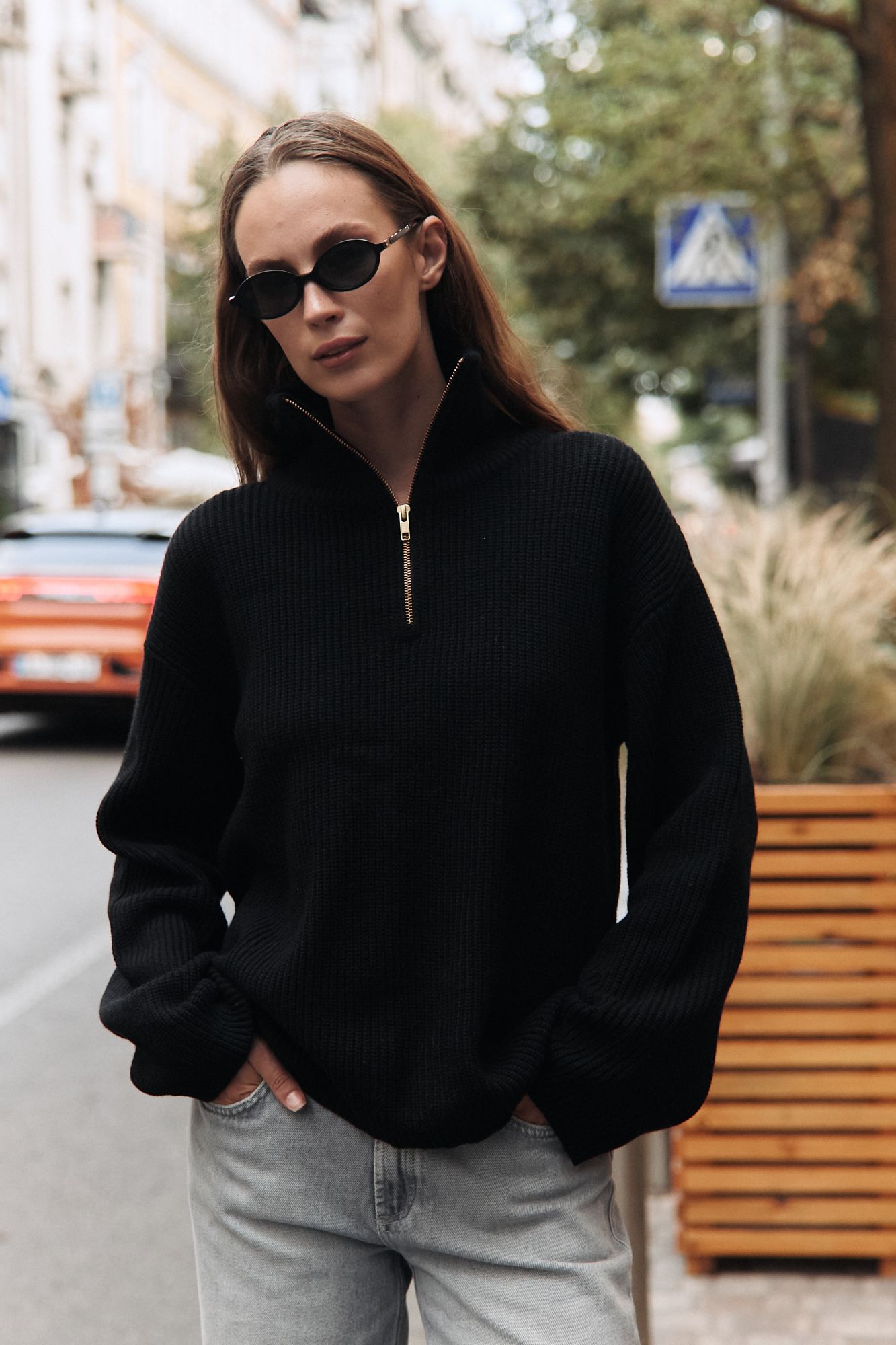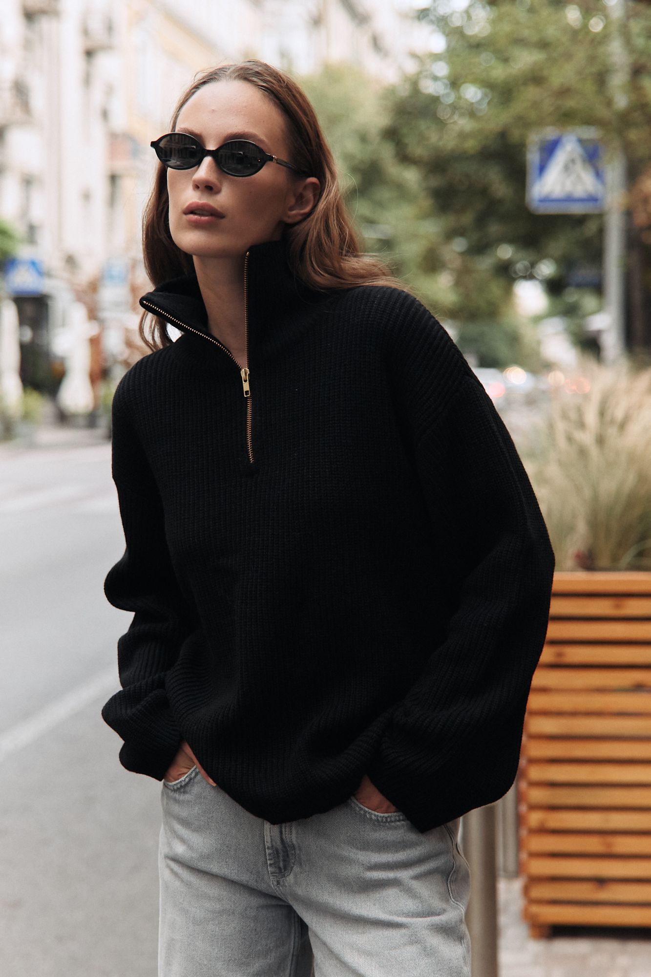 Oверсайз светр в рубчик з високою горловиною на блискавці
