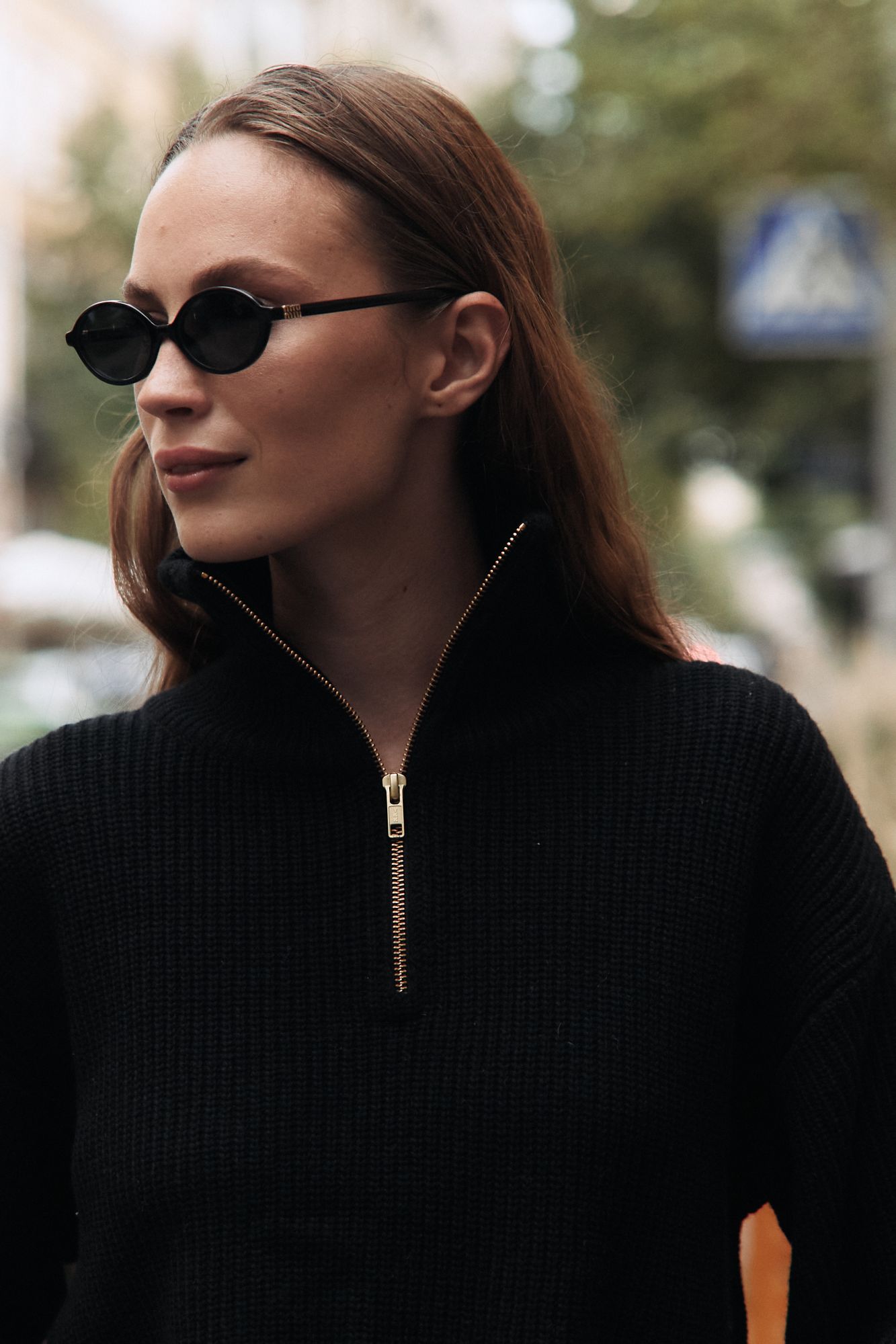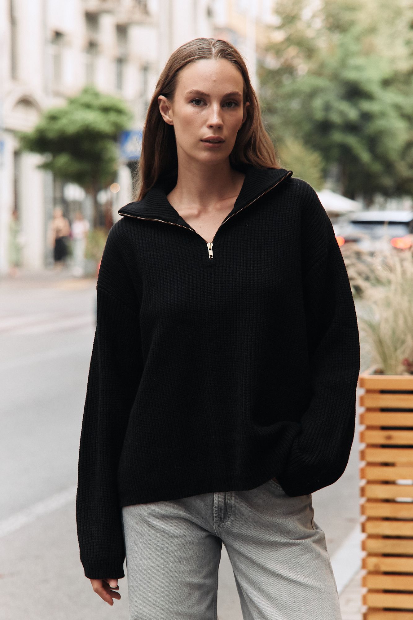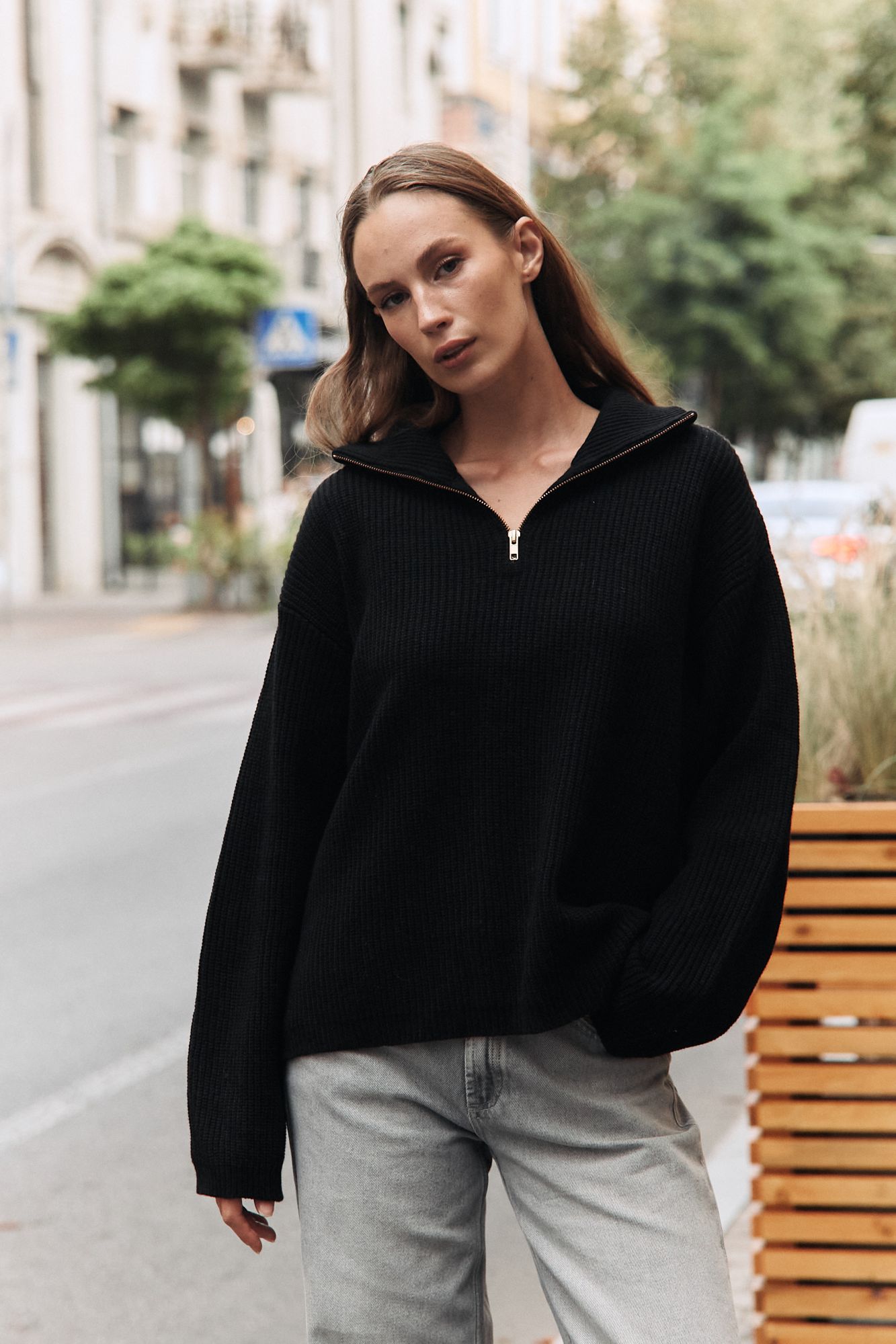Oверсайз светр в рубчик з високою горловиною на блискавці