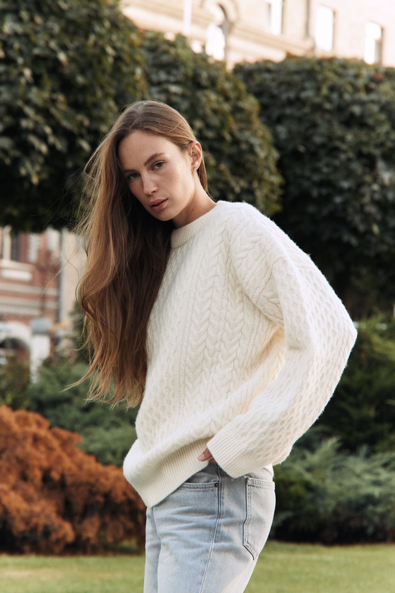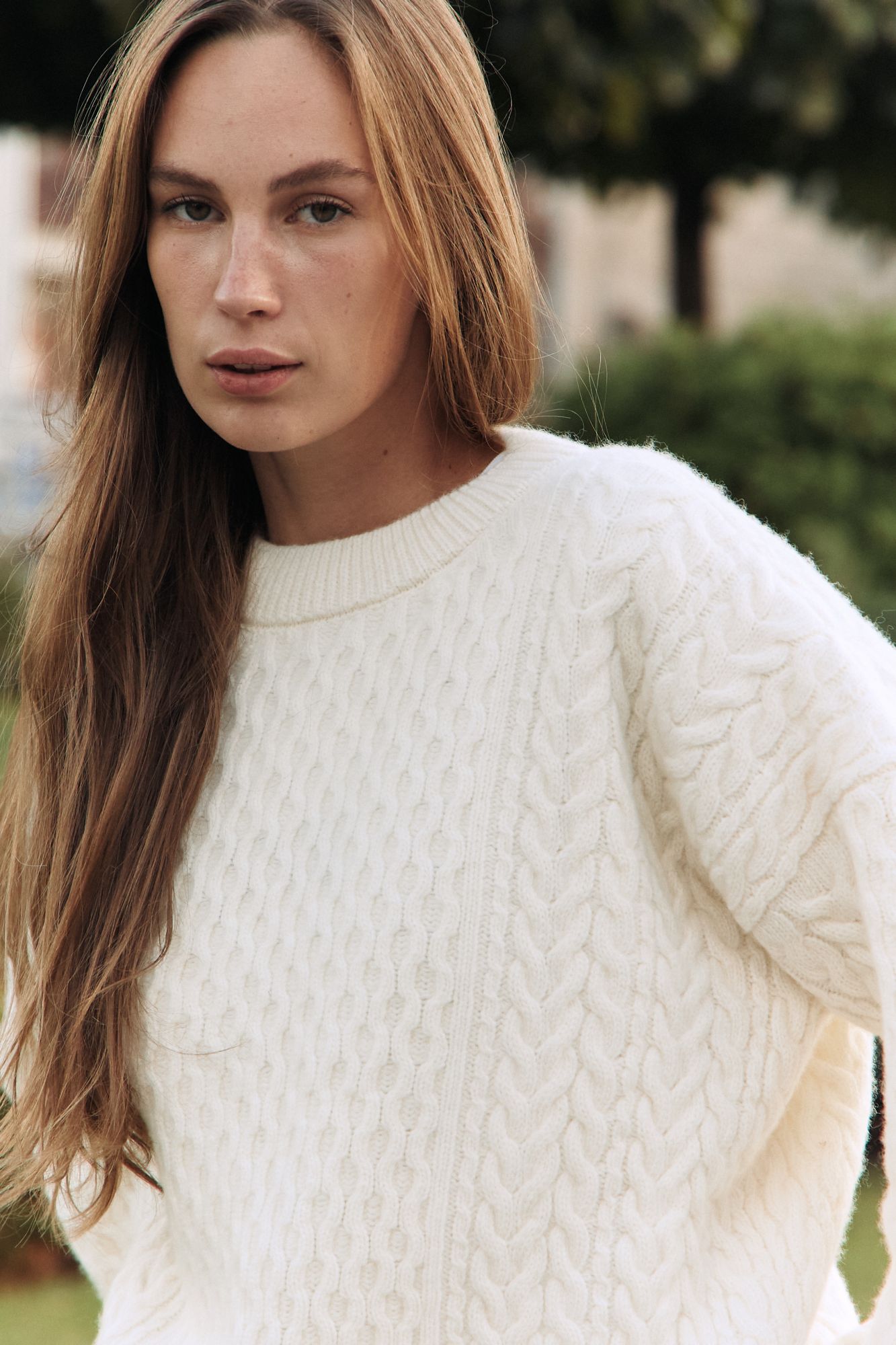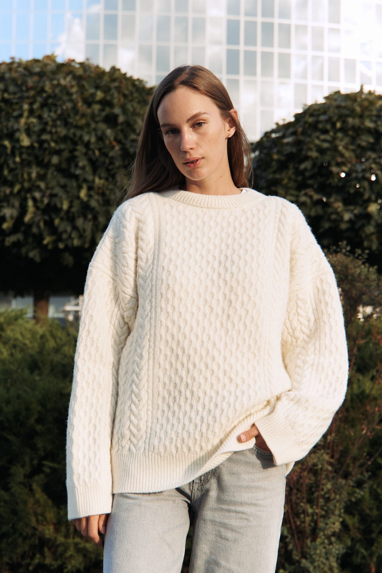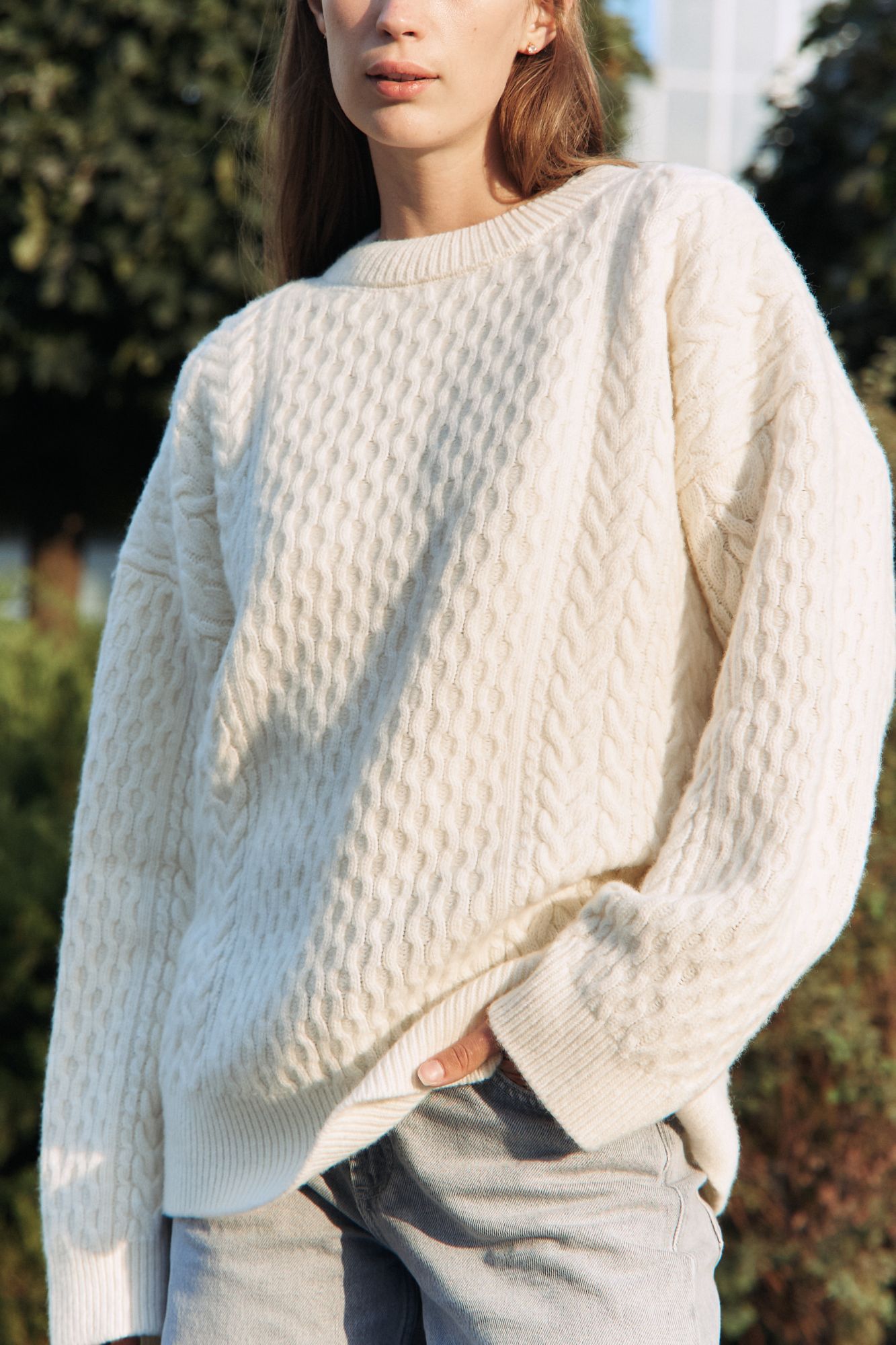 Светр крупної вязки з косами і аранами